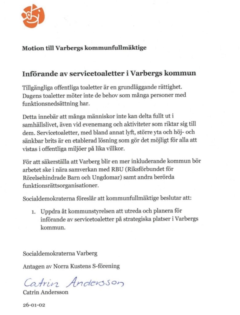 Läs mer om “Motion i Varberg om servicetoaletter” februari 19, 2026 Motion i Varberg om servicetoaletter I början av 2026 lämnade Socialdemokraterna i Varberg in en motion där de föreslår att kommunstyrelsen ska utreda och planera...